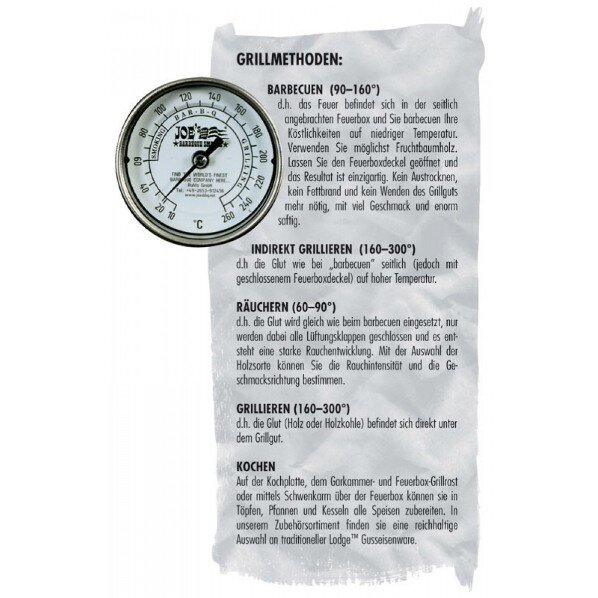 Wir präsentieren den neuen Rückwärts-BBQ-Smoker von JOE's. Wenn wir überhaupt so etwas denken können, so ist die einzige Schwäche des "normalen" BBQ-Smokers die Hitzeverteilung in der Garkammer. Von der Feuerbox bis zum Kaminzug sind 30° C Temperatur-Unterschiede und mehr möglich. Wer also die Kammer richtig voll gepackt hat, muss wohl oder übel eiserne BBQ-Regeln brechen und den Deckel öffnen, um Grillgut umzuschichten. Nicht jeder leistet sich gleich ein Catering-System zur Hitzeverteilung.